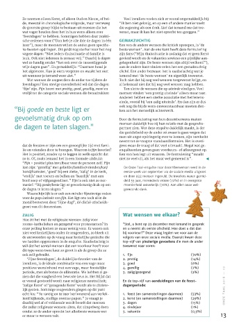 ‘vrolijk’ met toeters en bellen en ‘heerlijk’ met een en door 922 mensen ingevuld. De invullers waren gemid-