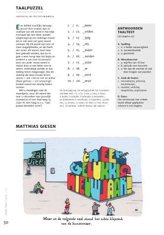 voor 17 december naar puzzel@ 6 dealen; 7 elanden; 8 belanden; 9 benadelen; D. Extra