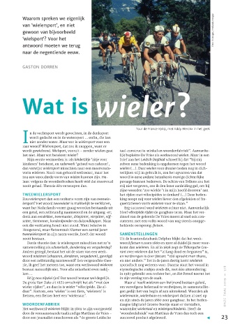wieler rijden”, en daarin is wieler “vélocipède. Zie al- om vervolgens helemaal te verdwijnen, in samenstellin- ONZE TAAL 2019 — 7/8
