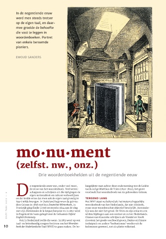 10 boek der Nederlandsche Taal (WNT) te gaan maken. De be- kolommen geweerd, net als platte volkstaal.