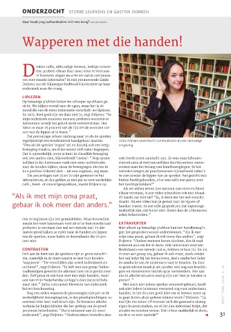 maal niet.” Zulke contrasten bleven in het onderzoek Net zoals niet iedere spreker evenveel gebaart, heeft ONZE TAAL 2019 — 10