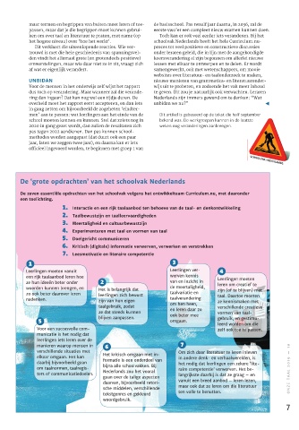 De zeven essentiële opdrachten van het schoolvak volgens het ontwikkelteam Curriculum.nu, met daaronder