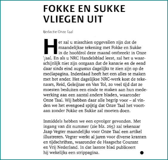 Daarna verscheen er in iedere aflevering van Onze Taal een Fokke & Sukke-cartoon, zoals deze over congrestolken: